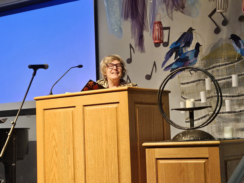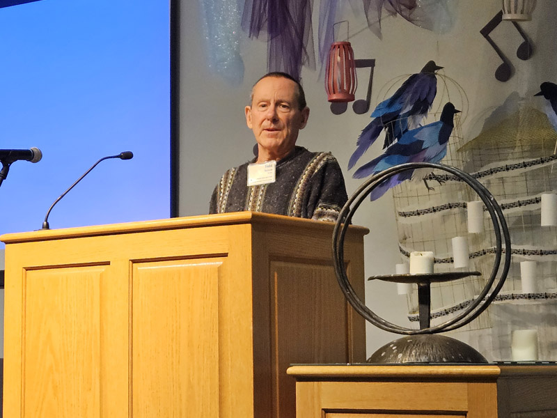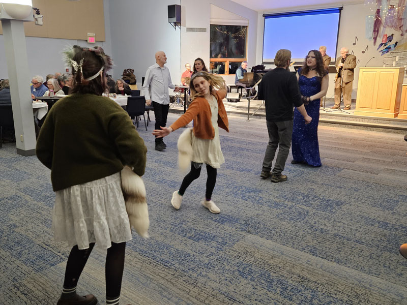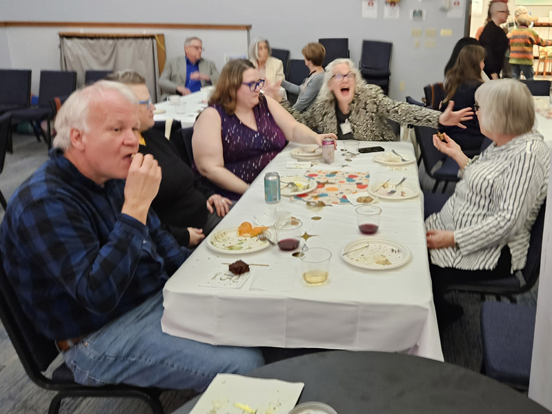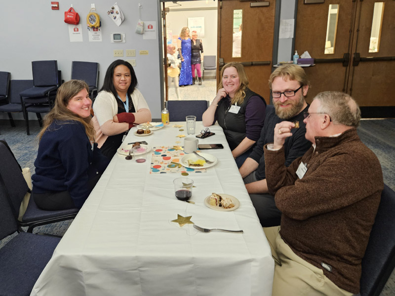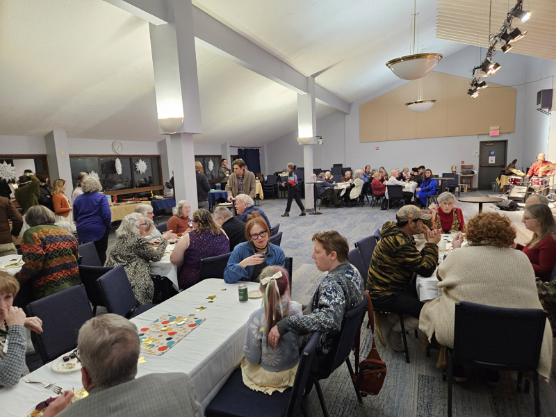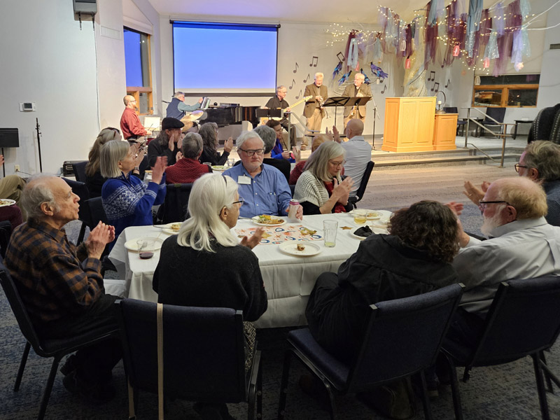 The 16 photos in the slideshow below were taken at our 75th birthday party at church on the evening of Jan. 30, 2025. About 100 members and friends attended the party, which featured a large – and mostly consumed – birthday cake.